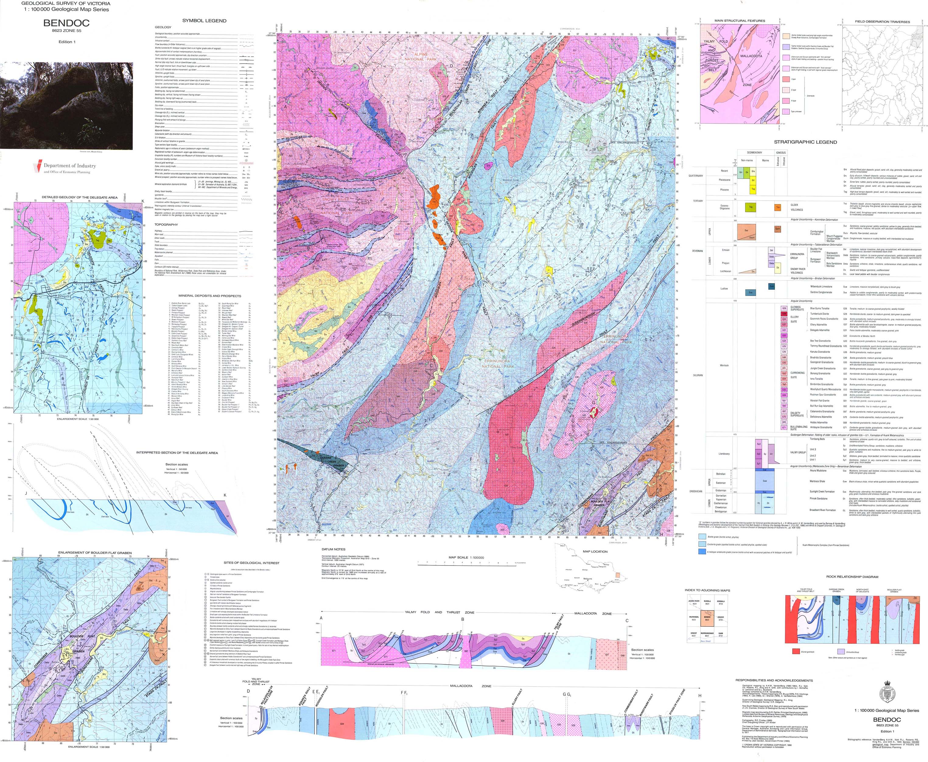 The 1990 Bendoc map was also the first Geological Survey of Victoria map to illustrate, in an accompanying cross-section, the new concept of thin-skinned tectonics.