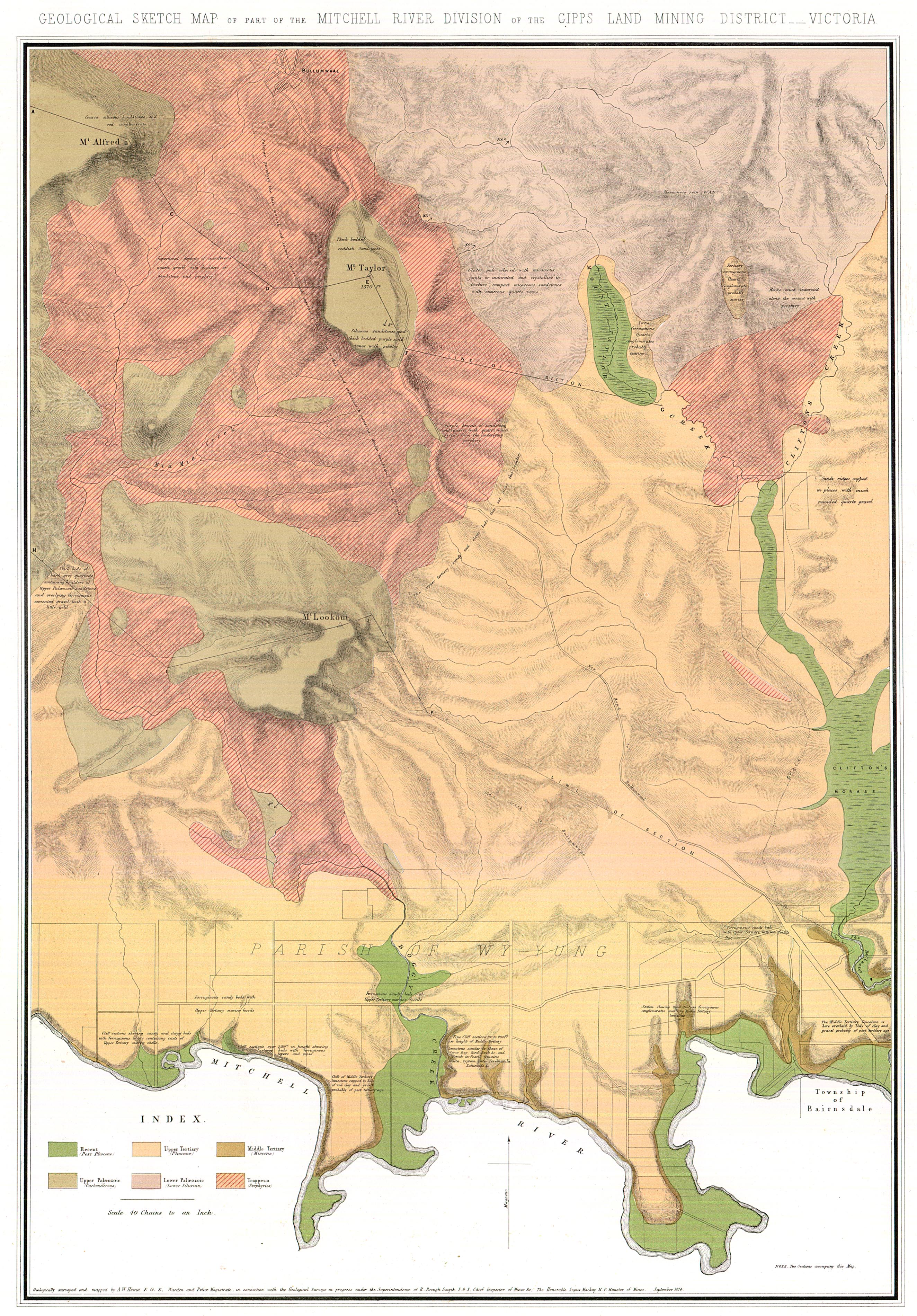 Geological sketch map of part of the Mitchell River Division of the Gippsland Mining District (1874)