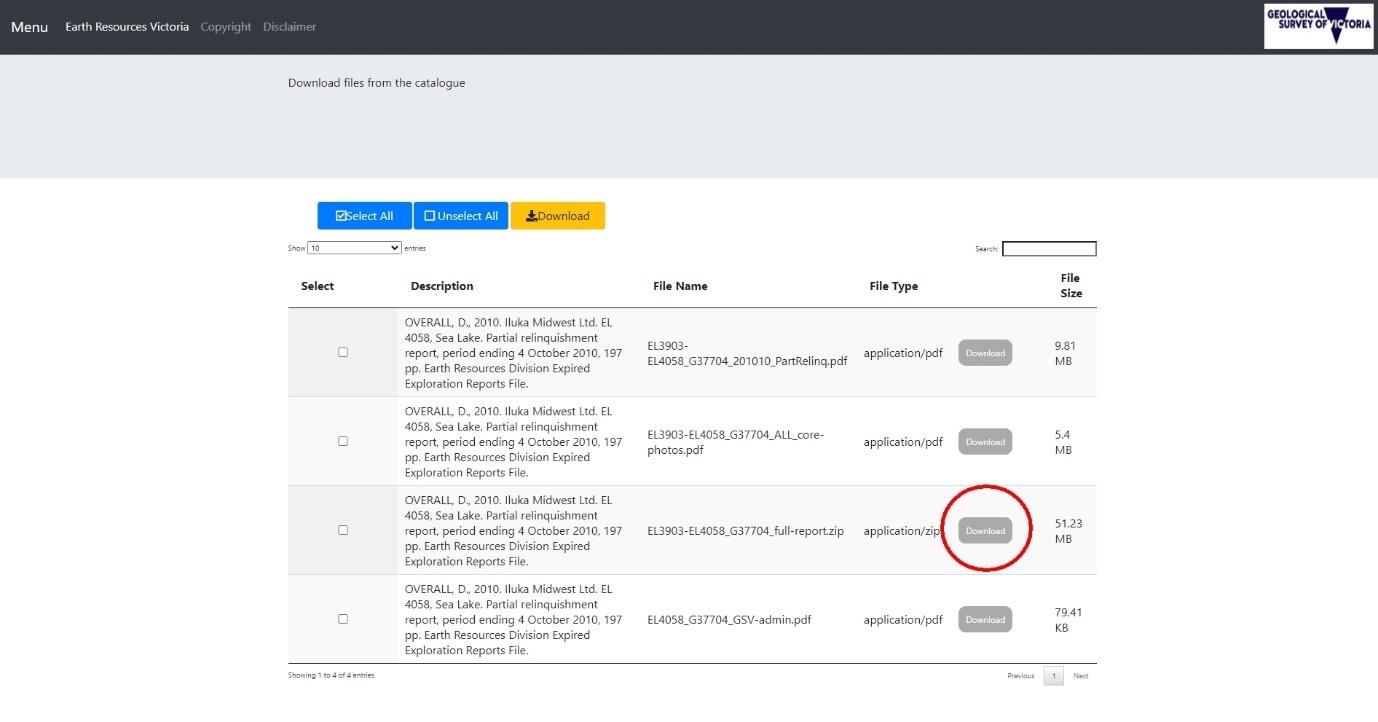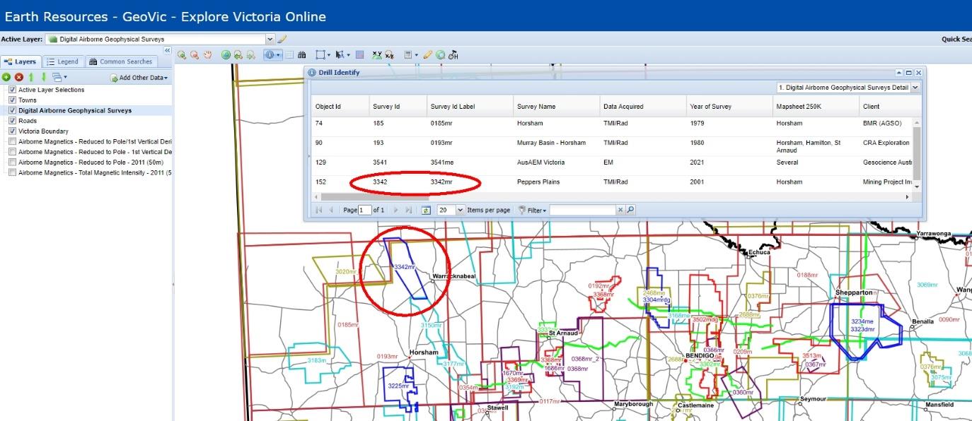 These instructions explain how to access survey reports and data directly from the GeoVic Airborne Geophysical Surveys Index.