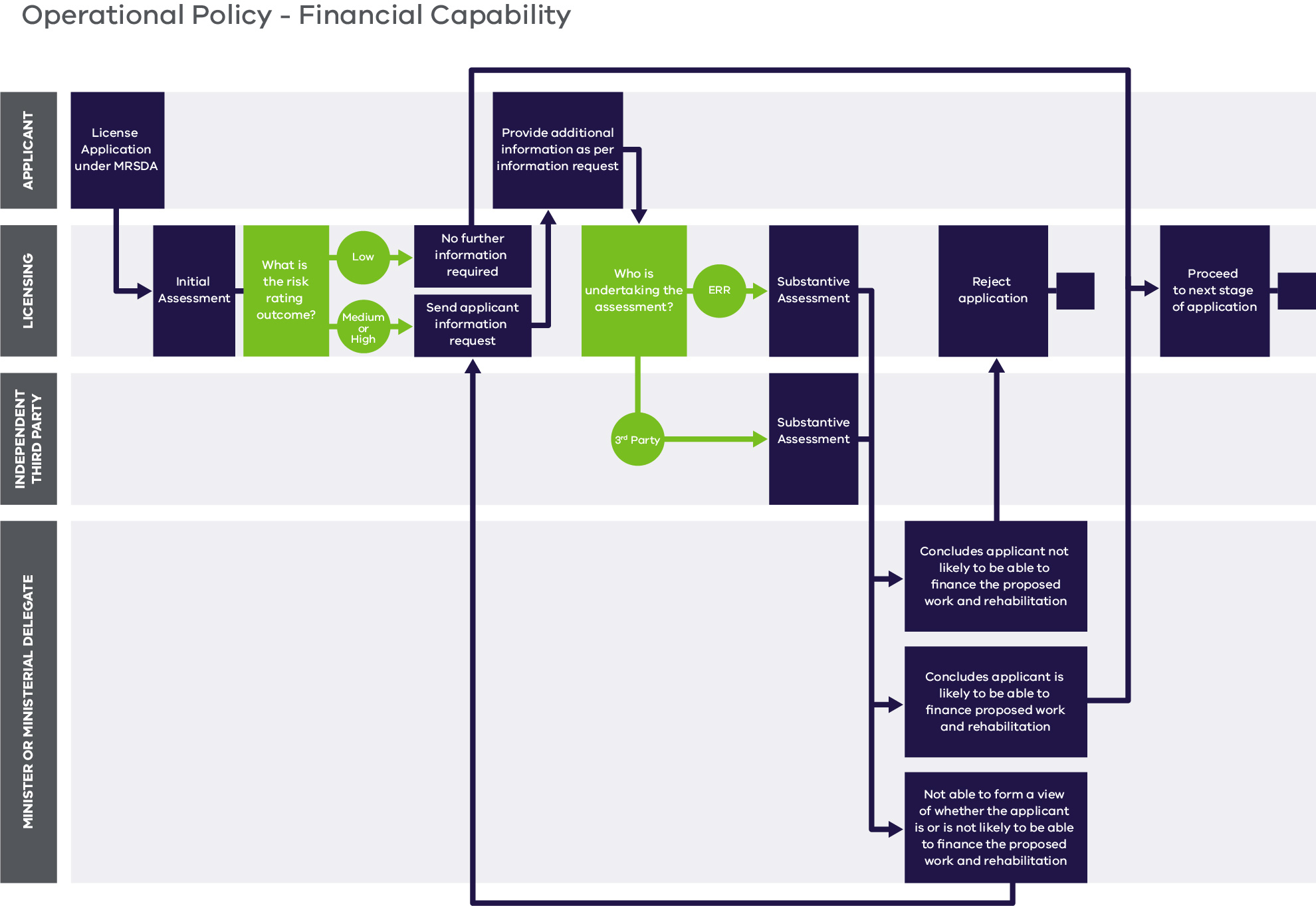 Each licence applicant will be subject to an assessment process to determine their financial capability to undertake the works and rehabilitation for the licence for which they have applied.